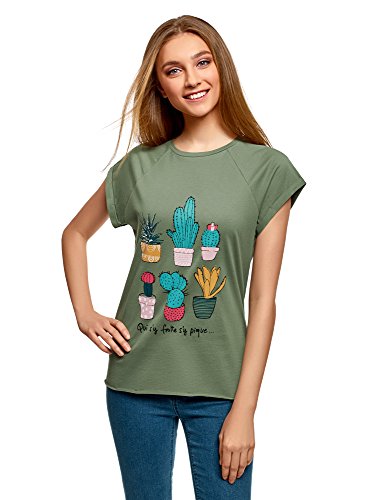 Oodji Ultra Donna T-Shirt con Stampa Estiva, Verde, L