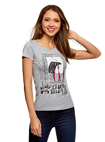 Oodji Ultra Donna T-Shirt Stampata, Grigio, IT 46 / EU 42 / L