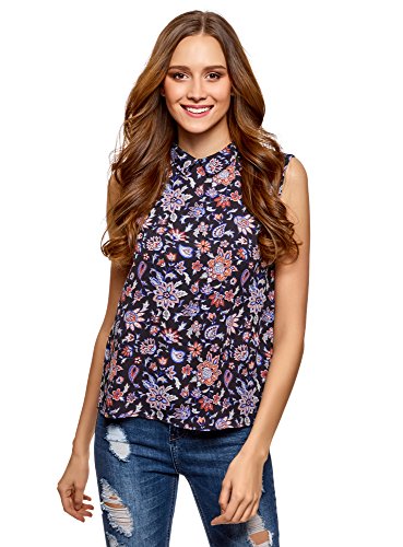 Oodji Ultra Donna Top in Tessuto Fluido, Blu, XXS