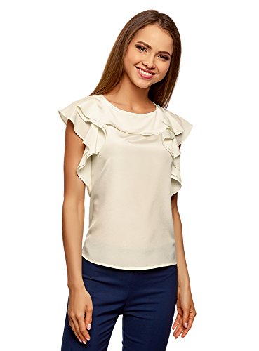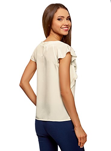 Oodji Ultra Donna Top con Volant in Tessuto Fluido, Bianco, IT 40 / EU 36 / XS