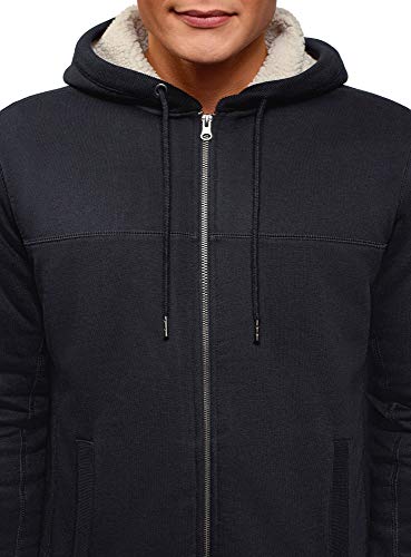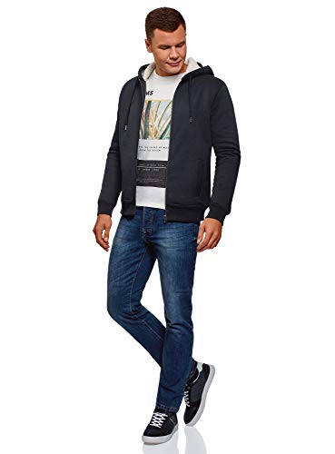 Oodji Ultra Uomo Felpa con Cerniera e Cappuccio, Blu, IT 42 / EU 44 / XS