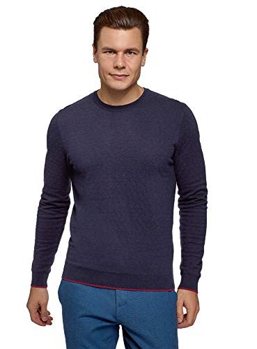 Oodji Ultra Uomo Felpa Stampata con Girocollo, Blu, L