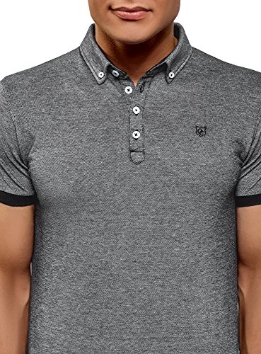 Oodji Ultra Uomo Polo con Finitura a Contrasto su Maniche, Grigio, IT 54 / EU 56 / XL
