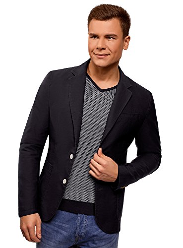 Oodji Ultra Uomo Giacca Aderente con Tasche Applicate, Blu, 50