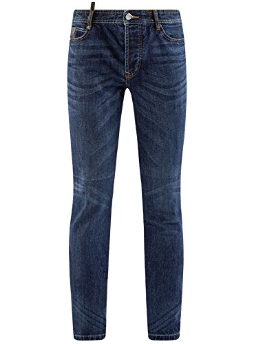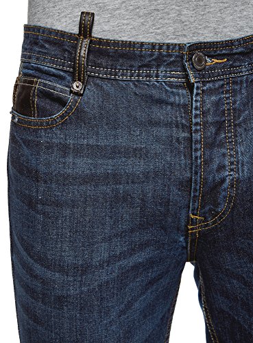 Oodji Ultra Uomo Jeans Slim Fit con Inserti in Ecopelle, Blu, 32W / 34L