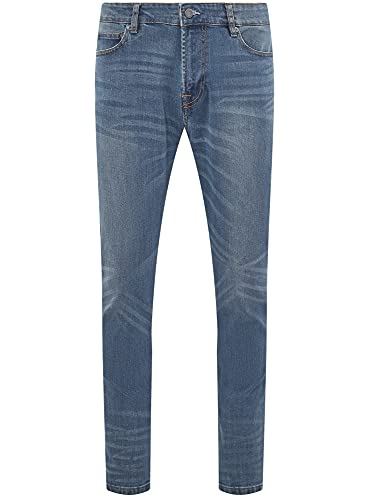 Oodji Ultra Jeans da uomo Slim Fit con vita regolare, Blu (7400 W), 39