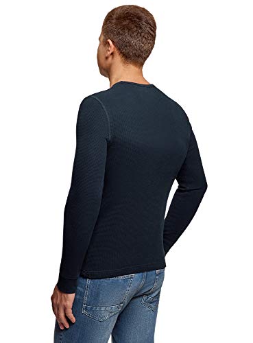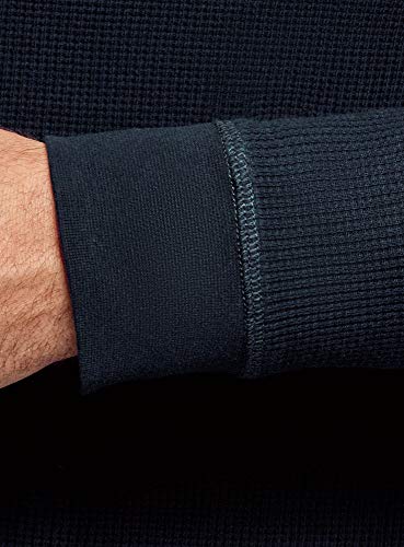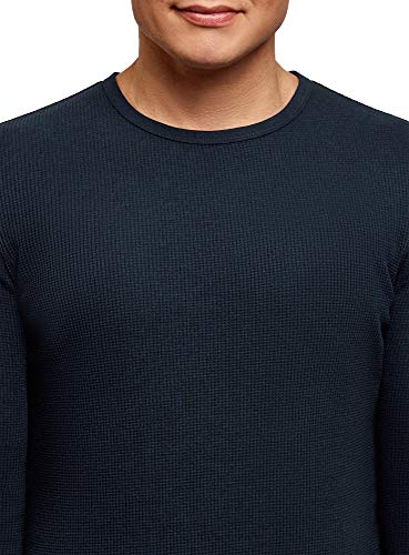 Oodji Ultra Uomo Maglia a Maniche Lunghe in Tessuto Testurizzato, Blu, IT 50-52 / EU 52-54 / L