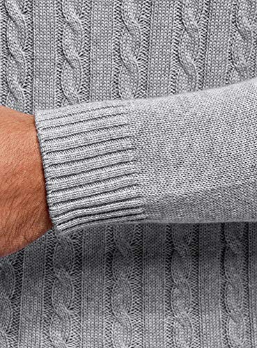 Oodji Ultra Uomo Maglione Dolcevita Lavorato a Trecce, Grigio, IT 44-46 / EU 46-48 / S