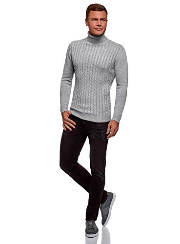 Oodji Ultra Uomo Maglione Dolcevita Lavorato a Trecce, Grigio, IT 50-52 / EU 52-54 / L