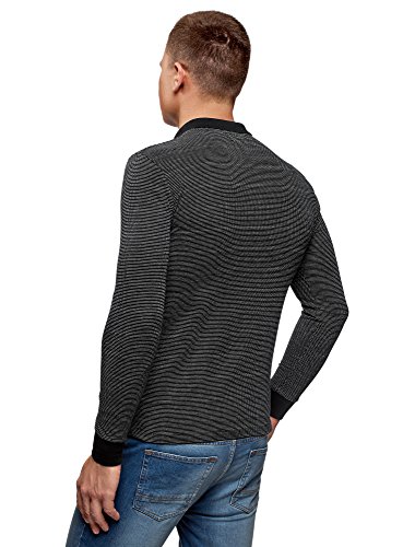 Oodji Ultra Uomo Polo con Maniche Lunghe e Stampa in Jacquard, Nero, IT 48 / EU 50 / M