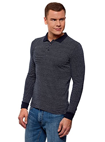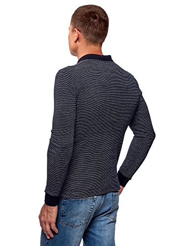 Oodji Ultra Uomo Polo con Maniche Lunghe e Stampa in Jacquard, Blu, IT 54 / EU 56 / XL