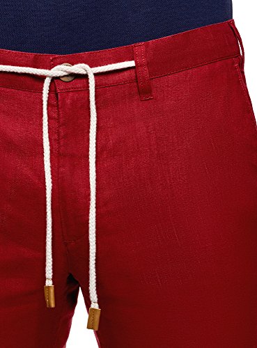 Oodji Ultra Uomo Pantaloncini in Lino con Laccetti, Rosso, 48