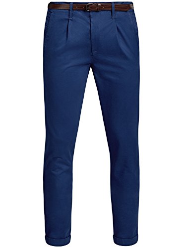 Oodji Ultra Uomo Pantaloni Chino con Cintura, Blu, 50