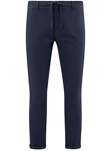 Oodji Ultra Uomo Pantaloni in Cotone con Laccetti, Blu, 48