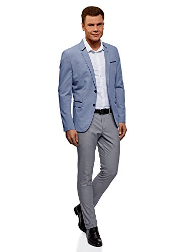 Oodji Ultra Uomo Pantaloni Slim Fit con Pieghe, Grigio, IT 48 / EU 44 (L)