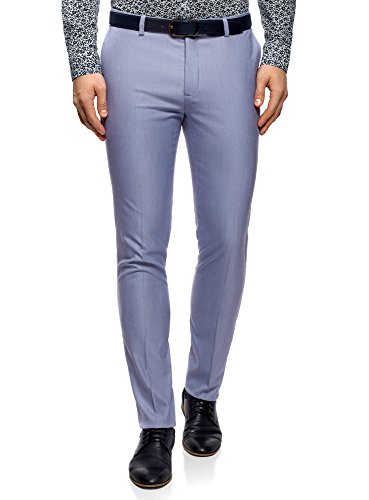 Oodji Ultra Uomo Pantaloni Slim Fit con Pieghe, Blu, 44