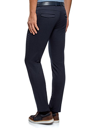 Oodji Ultra Uomo Pantaloni Slim Fit con Pieghe, Blu, 48