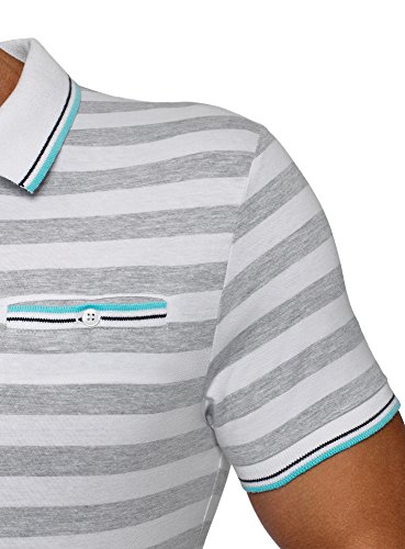 Oodji Ultra Uomo Polo a Righe con Finitura a Contrasto, Bianco, IT 48 / EU 50 / M