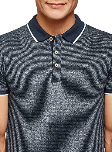 Oodji Ultra Uomo Polo Stampata in Cotone, Blu, M