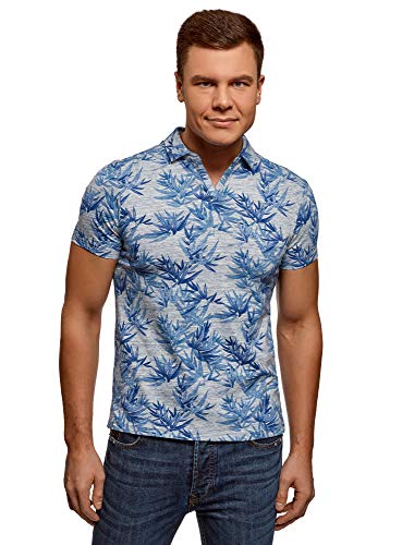 Oodji Ultra Uomo Polo Stampata, Grigio, L