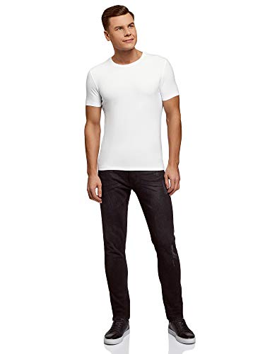 Oodji Ultra Uomo T-Shirt Basic in Cotone con Orlo a Taglio Vivo, Bianco, 48
