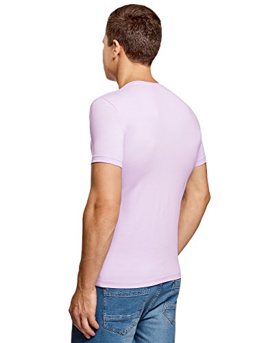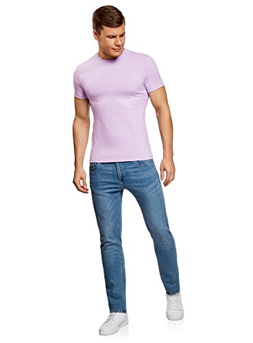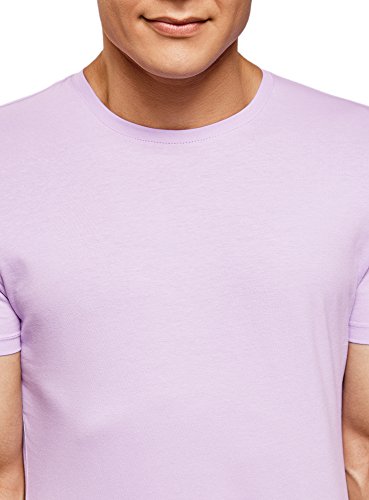 Oodji Ultra Uomo T-Shirt Basic in Cotone con Orlo a Taglio Vivo, Viola, 48