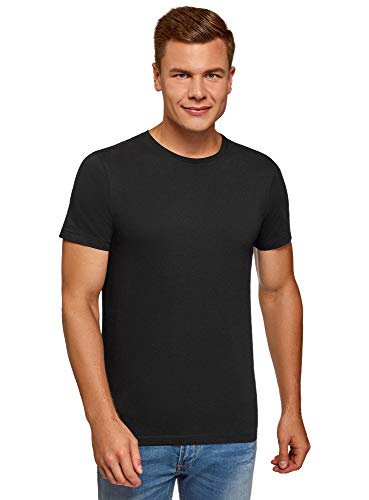 Oodji Ultra Uomo T-Shirt Basic Dritta, Nero, IT 54 / EU 56 / XL