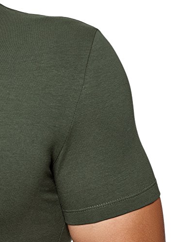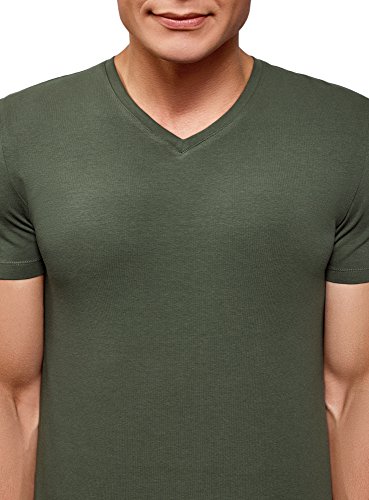 Oodji Ultra Uomo T-Shirt Basic con Scollo a V Senza Etichetta, Verde, 56-58