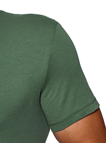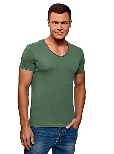 Oodji Ultra Uomo T-Shirt in Cotone con Scollo a V Grezzo, Verde, IT 48 / EU 50 / M