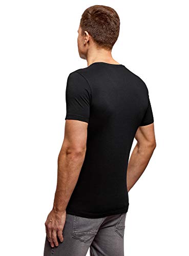 Oodji Ultra Uomo T-Shirt in Cotone con Scritta, Nero, 42
