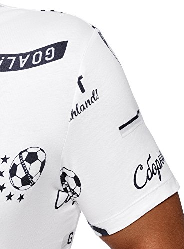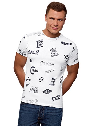 Oodji Ultra Uomo T-Shirt in Cotone con Stampa, Bianco, IT 48 / EU 50 / M