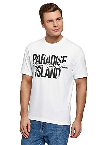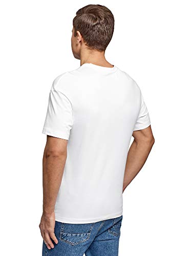 Oodji Ultra Uomo T-Shirt in Cotone con Stampa, Bianco, 48