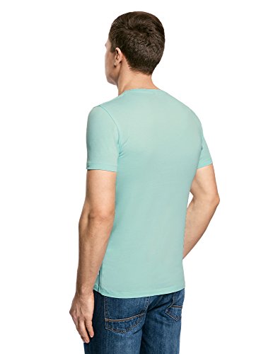 Oodji Ultra Uomo T-Shirt in Cotone con Stampa Palme, Turchese, IT 42 / EU 44 / XS