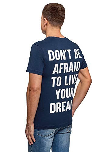 Oodji Ultra Uomo T-Shirt Dritta con Stampa, Blu, 44-46