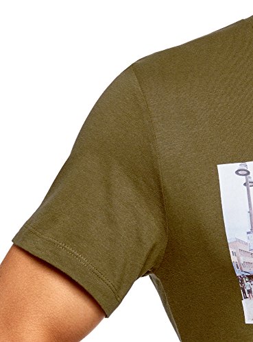 Oodji Ultra Uomo T-Shirt con Stampa Estiva, Verde, IT 50-52 / EU 52-54 / L