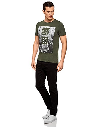 Oodji Ultra Uomo T-Shirt con Stampa Urban, Verde, M