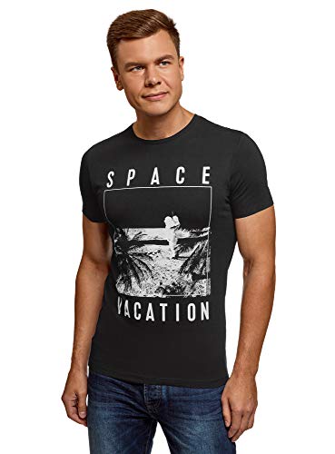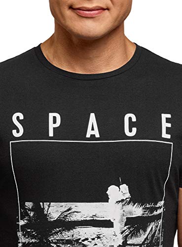 Oodji Ultra Uomo T-Shirt Stampata in Cotone, Nero, IT 42 / EU 44 / XS