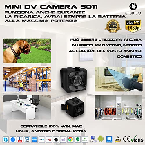 Ookkio Mini Telecamera Spia Nascosta, Microcamera Videocamera Spy Cam Digitale NO Wifi Video Sorveglianza Interno Esterno, Telecamere Interne Senza Fili