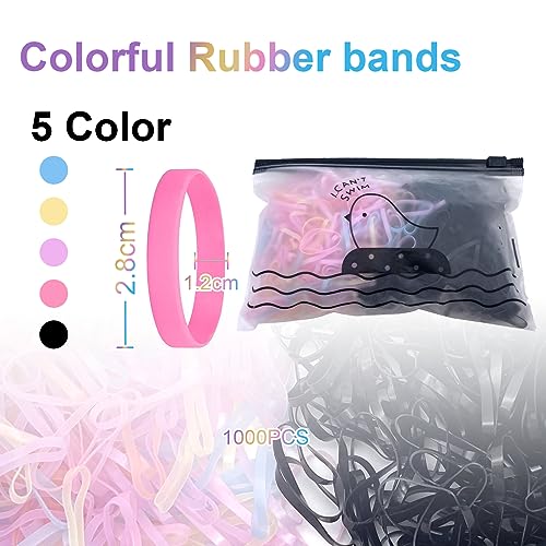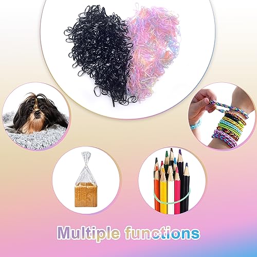 OOTDAY Mini Elastici Gomma, 1000 Pezzi Elastici a Treccia Morbida, Elasticini Piccolini Capelli per Trecce Capelli Bambini Capelli Acconciatura da Sposa e di Più(Nero e Gelatina)