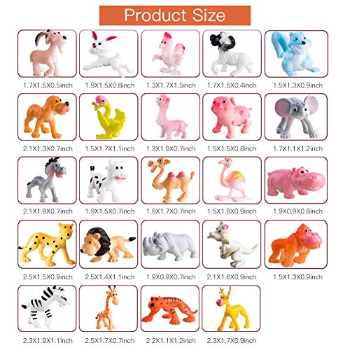 Le dimensioni di questi animali di plastica della fattoria e della giungla giocano approssimativamente tra 1 e 3 pollici, e sono adatte per bambini di 3 anni e oltre