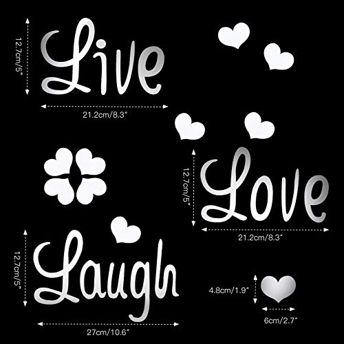 Contenuto totale: riceverai 10 adesivi a specchio a forma di cuore e 3 parole: amore live laugh adesivi da parete per soggiorno, camera da letto