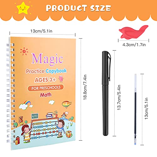 OOTSR - 4 libri magici per la scrittura con penne magiche, matematica e aphabet numerico, aggiornamento per scrittura a mano magica, libro di tracciamento