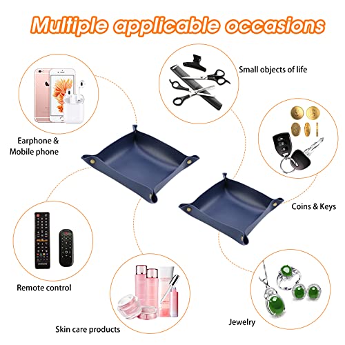 OOTSR 2 Pacchi Vassoio portaoggetti in Pelle, Vassoio svuotatasche Decorare la Casa Ufficio Viaggio, Piastra portaoggetti da scrivania per Portafogli Orologi Chiavi Monete Gioielli, Blu