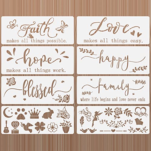 OOTSR 8 Pezzi Ispiratori di Parole Stencil di Pittura Stencil in Plastica Riutilizzabile Stencil Template per Dipingere su Legno Muro Decorazione da Parete Fai Da Te Scrapbooking