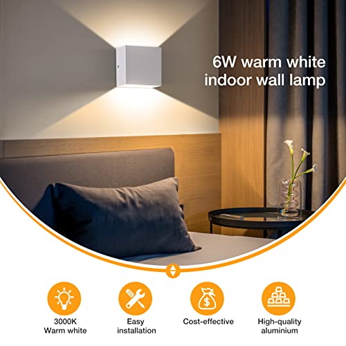 OOWOLF Applique da Parete LED 6W Lampada da Parete per Interni 4Pcs, Luce Bianca Calda 3000K Lampada Moderna per Soggiorno, Corridoio, Camera da letto
