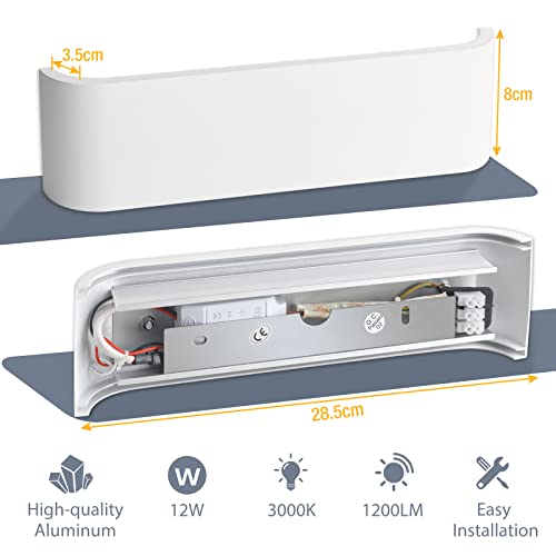 OOWOLF LED Lampada da Parete Interno 12W, 2 pezzi, Applique 3000K Luce Calda, per Camera da Letto, Soggiorno, Scale, Corridoio