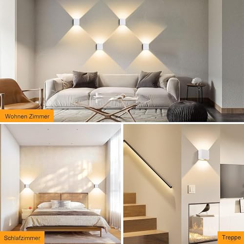 OOWOLF 2 Pezzi 6W LED Applique da parete Lampada da Parete Bianco Caldo 3000k Moderno in Alluminio per Soggiorno Camera da Letto Corridoio Scale Cucina Sala da Pranzo