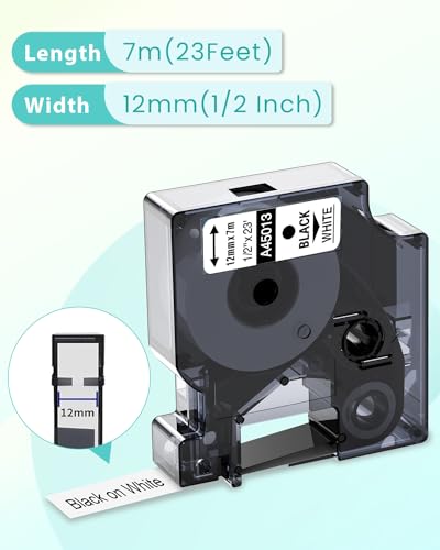 Oozmas A45013 Etichette Compatibile con Dymo D1 12mm x 7m 45013 S0720530 Nero su Bianco, Compatibile con Dymo Label Manager 160 210d 260p 280 360d 420p Etichettatrici, 5P