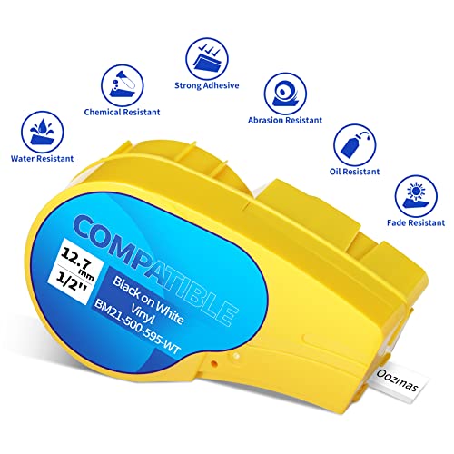 2x Oozmas Etichettatrice M21-500-595-WT Vinile Etichettes Compatibile Label Printer BM21-PLUS, BM21-LAB et BM21, Nero su Bianco, 12.7mm x 6.4m