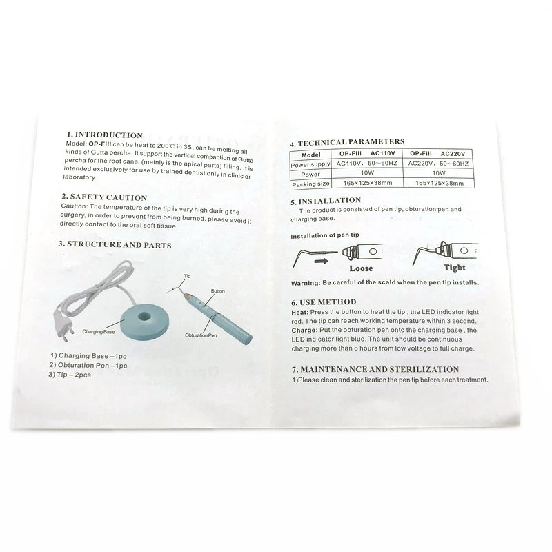 OP-Fill Dental Obturation System Pen & Tips Endodontic Endo Gutta Percha Points Heater Plugger